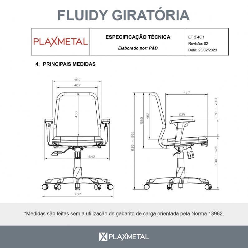- Cadeira Executiva Giratória Fluidy - Base Standard - Braços Delta - Plaxmetal