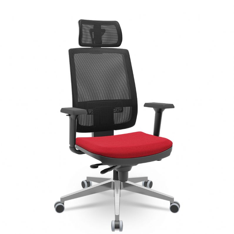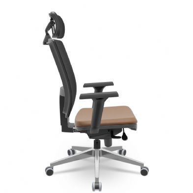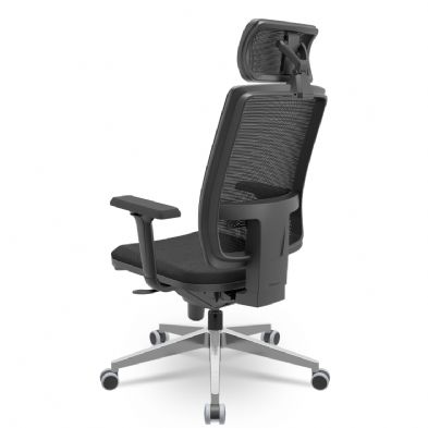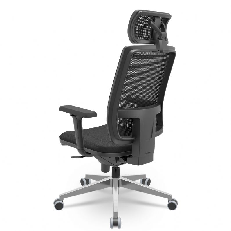 Cadeira Presidente Brizza Tela - Slider - Base Alumínio - Braços Shift 3D PU - Plaxmetal