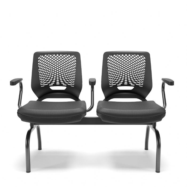 - Longarina de 2 lugares modelo Beezi Com Braços - Base de Metal