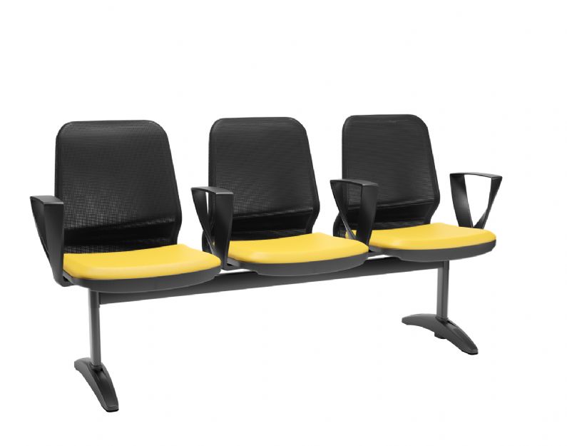 - Longarina Executiva de 3 Lugares - Com Braços Delta - Modelo Fluidy - Plaxmetal