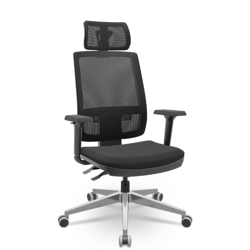 Cadeira Presidente Brizza Tela - Back Plax - Base Alumínio - Braços Shift 3D PP - Plaxmetal