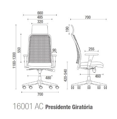 Cadeira Presidente - Linha NewNet - Modelo 16001 AC - Syncron - Braços 3D - Cavaletti