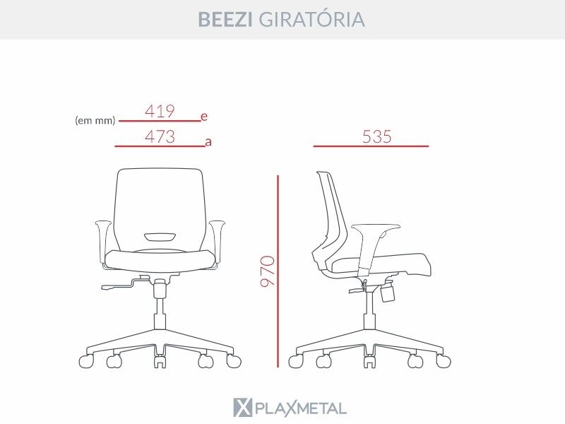 - Cadeira Beezi Giratória - Plaxmetal - Base Piramidal - Braços Reguláveis