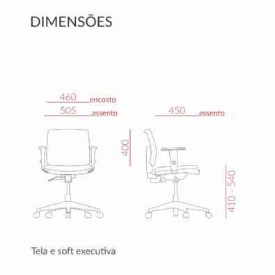 Os dois modelos de encosto, o Soft em espuma especial com diferentes opções de revestimentos oferece um agradável conforto sem deixar de perder a sua característica slim. O encosto em tela, além de oferecer estabilidade para as costas, mantendo suavemente o contorno de cada usuário, garante ventilação para os dias com temperaturas mais elevadas.
