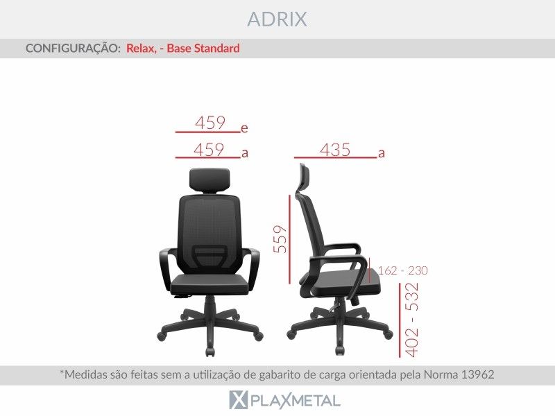 Poltrona Presidente Adrix - Encosto em Tela - Base Piramidal - Relax - Plaxmetal