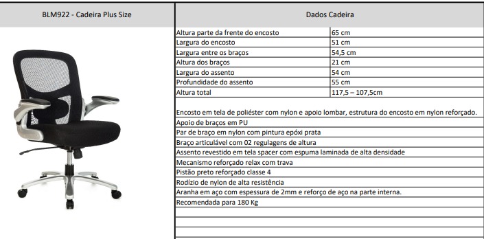 - Cadeira Diretor Plus Size para Obeso BLM 922P - Capacidade de 180 kg - Blume Import