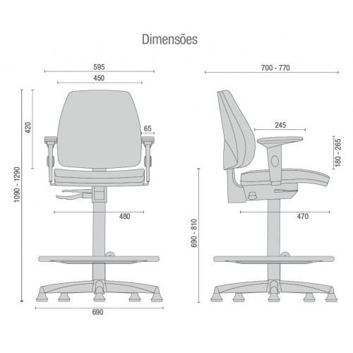 - Dimensões do produto: 690 larg. x 770 prof. totalx 1290 altura total
