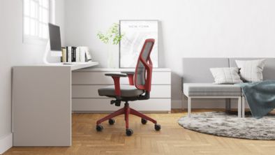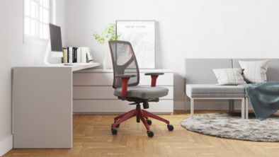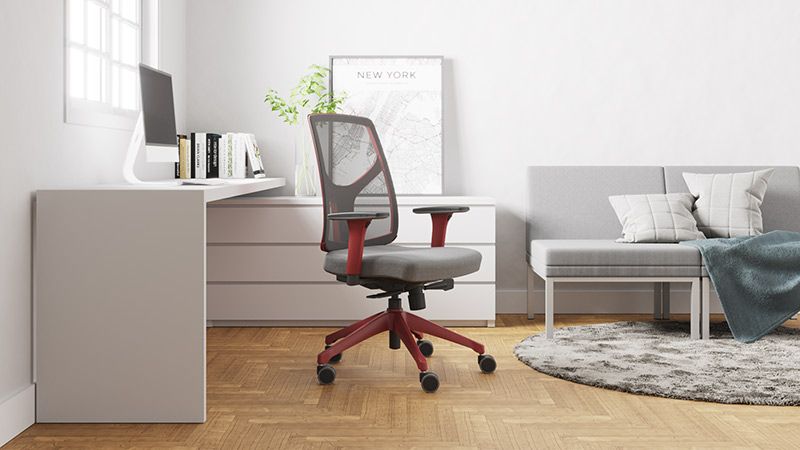 Cadeira Executiva Yon 47101 Syncron - Encosto Tela New Net - Encosto - Base UP e Braços cor Vermelho Aurora - Cavaletti