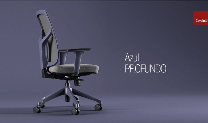 - Acabamento Plásticos do Encosto - Base e Braços na cor Azul Profundo.
