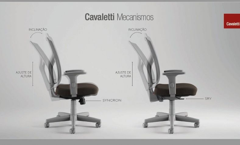 - Os produtos Cavaletti atendem aos requisitos das normas NR17 - Norma regulamentadora do ministerio do trabalho, que trata da ergonomia e da ABNT - NBR 13962 da Associação Brasileira de Normas Técnicas (ABNT), que normatiza os móveis e cadeiras para escritório, características físicas e dimensionais para se obter o melhor conjunto em termos de conforto, ergonomia e durabilidade
