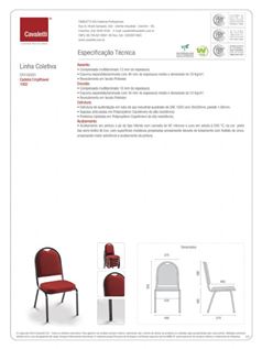 - Os produtos Cavaletti atendem aos requisitos das normas NR17 - Norma regulamentadora do ministerio do trabalho, que trata da ergonomia e da ABNT - NBR 13962 da Associação Brasileira de Normas Técnicas (ABNT), que normatiza os móveis e cadeiras para escritório, características físicas e dimensionais para se obter o melhor conjunto em termos de conforto, ergonomia e durabilidade.