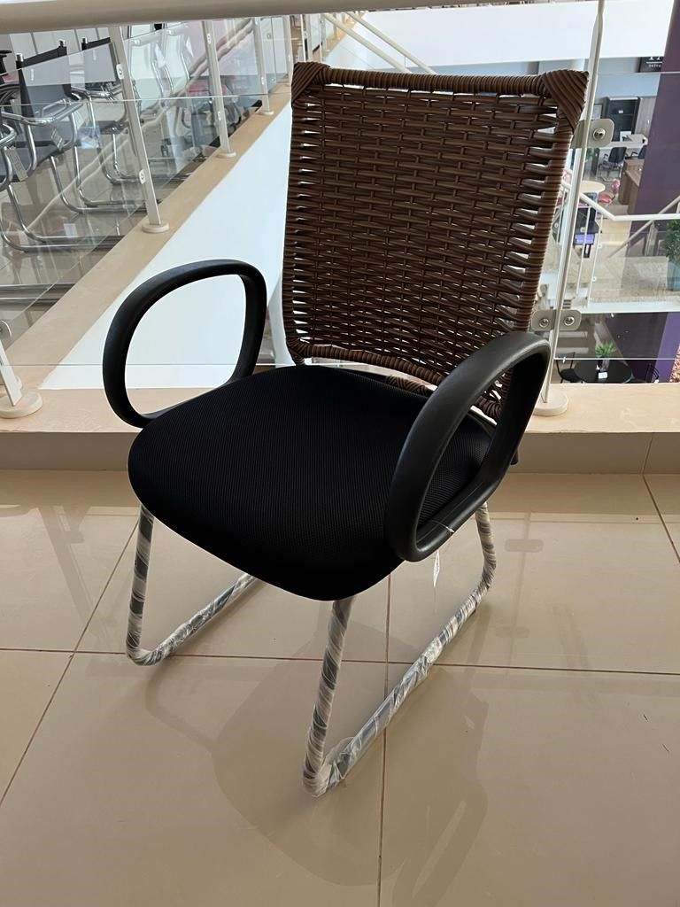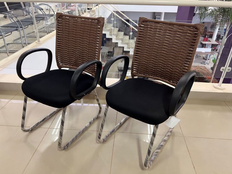Cadeira Fixa de Aproximação Interlocutor - Base e Braços - Encosto de Junco