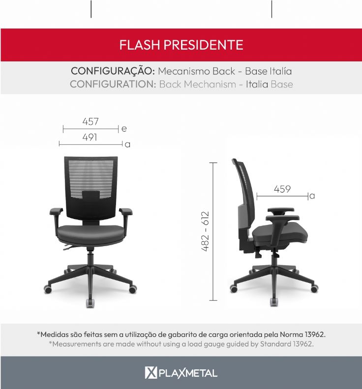 Cadeira Diretor Flash - Encosto em Tela - Back Plax - Base Itália - Braços Reguláveis em PP - Plaxmetal