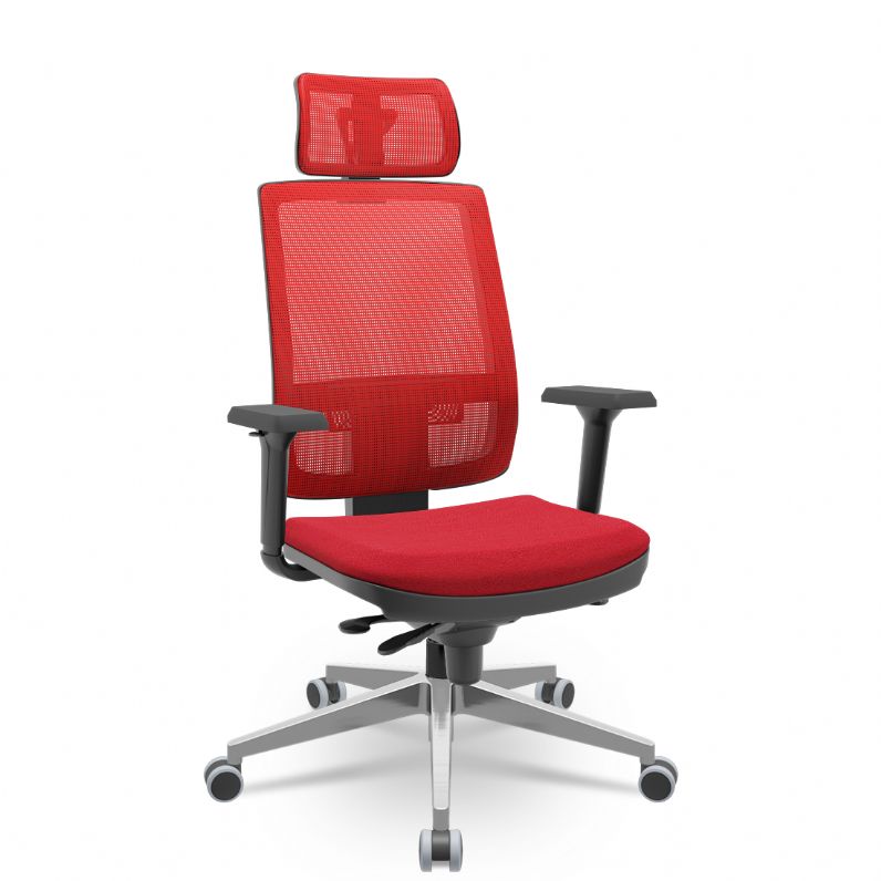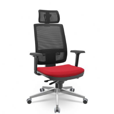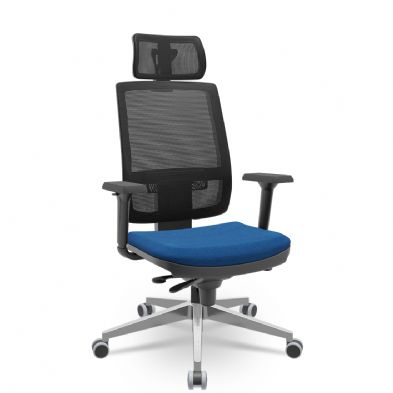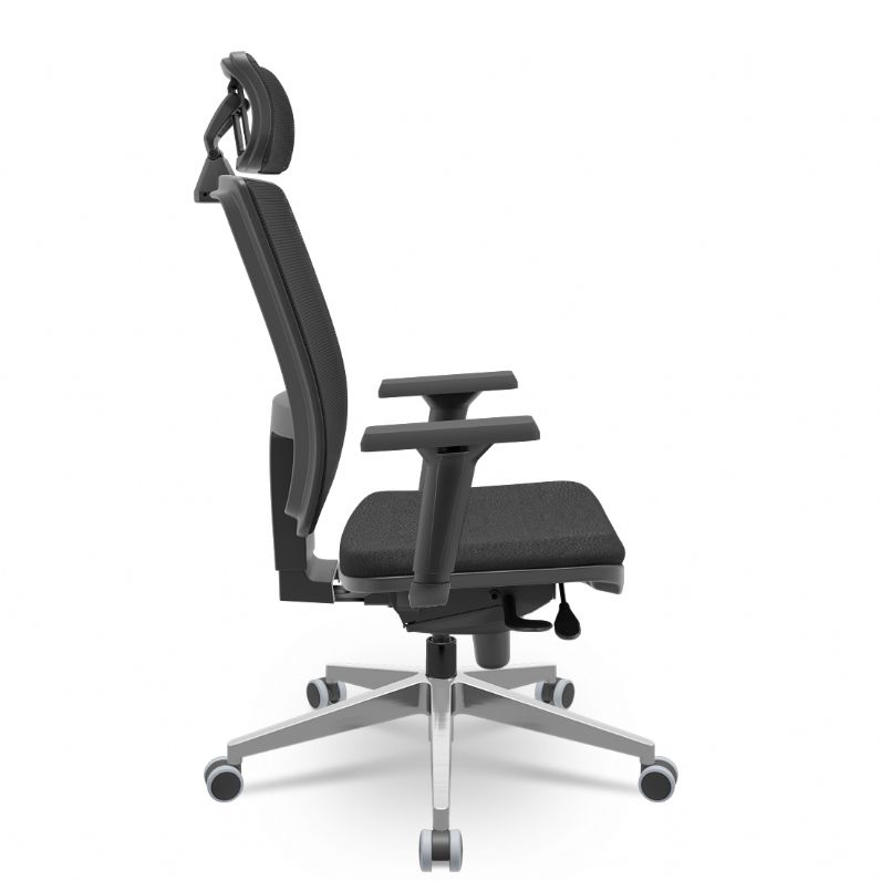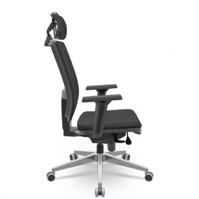 Cadeira Presidente Brizza Tela - Slider - Base Alumínio - Braços Shift 3D PU - Plaxmetal