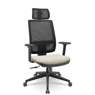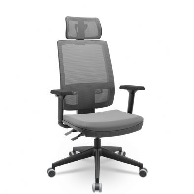 Cadeira Presidente Brizza Tela - Slider - Base Alumínio - Braços 3D PU - Plaxmetal