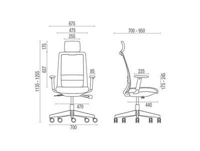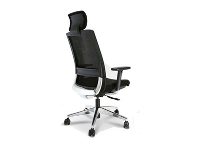 - Encosto alto e flexível revestido em tela
