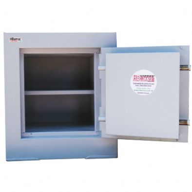 - Porta fabricada em chapa de aço SAE 1010/1020 fina quente bitola 5mm + 2mm de reforço no mecanismo de segredo,volante e fechadura, sistema de tranca através de ferrolhos de aço maciço trefilado bitola 18mm e utiliza-se como guia destes ferrolhos cantoneira de aço.