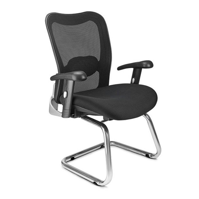 - Encosto com apoio na lombar ajustável revestido em tecido de tela flexível