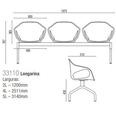 Longarina Stay 2 Lugares 33110 - Base Cromada - Cavaletti