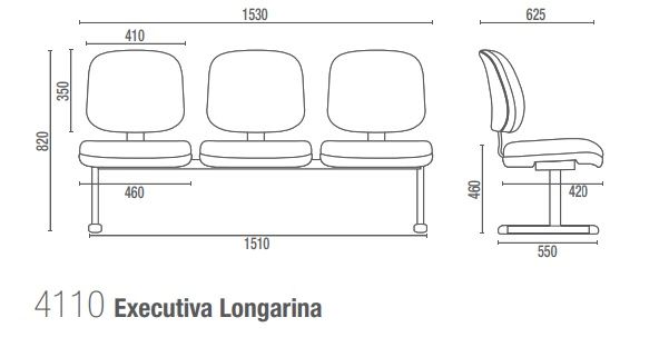 Longarina 3 Lugares Executiva Start 4110 Sem Braços - Cavaletti