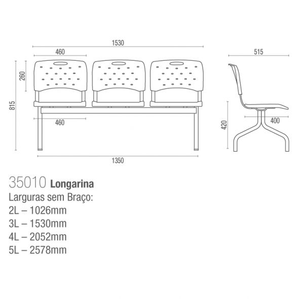 - Dimensões do produto: 1530 larg. x 515 prof. x 815 altura total
