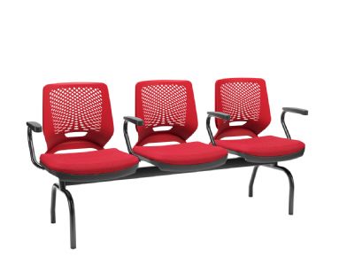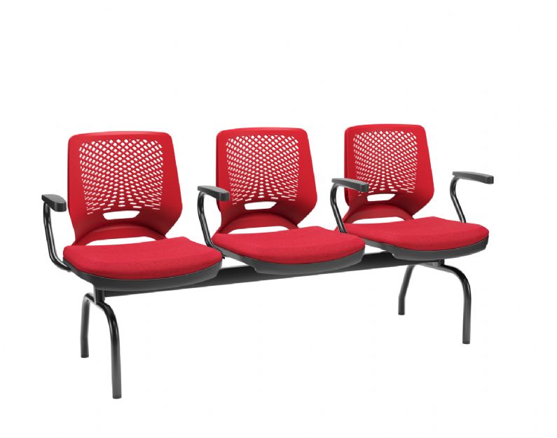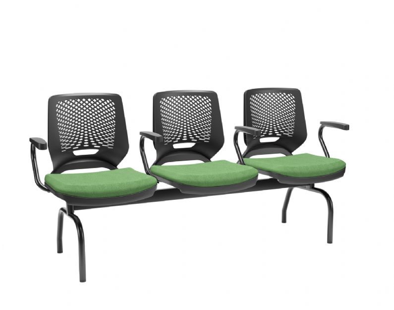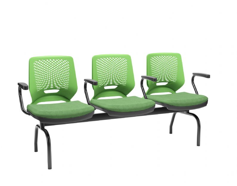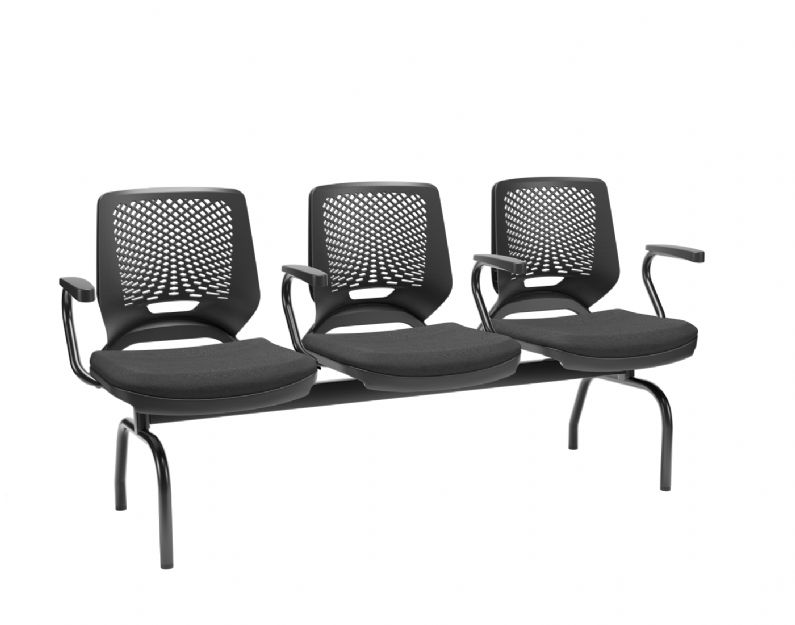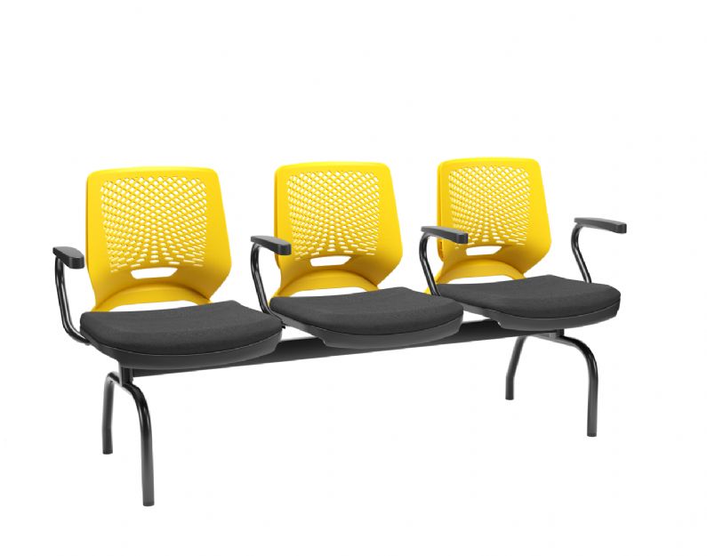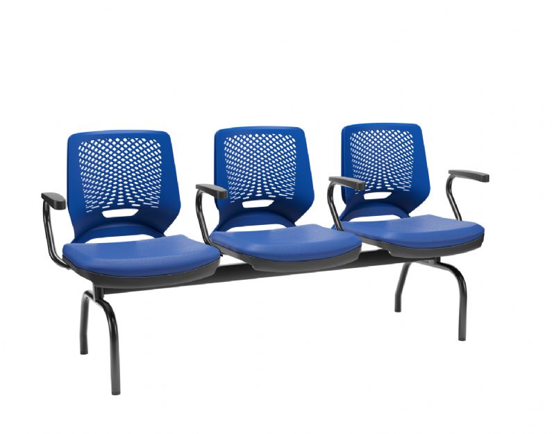 - Longarina de 3 lugares modelo Beezi Com Braços - Base de Metal