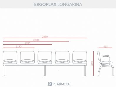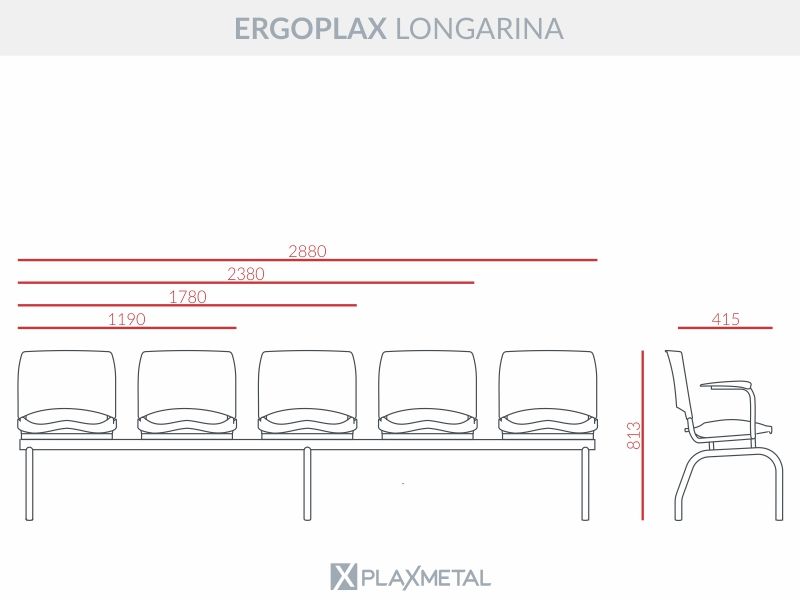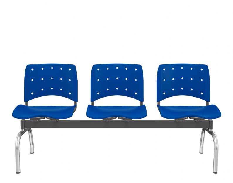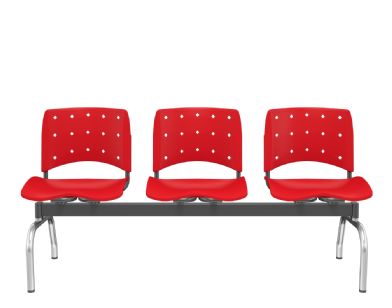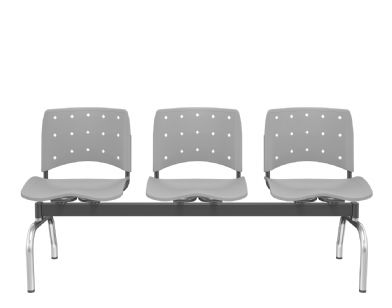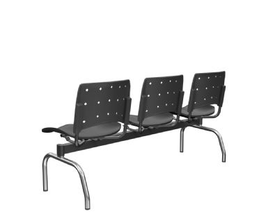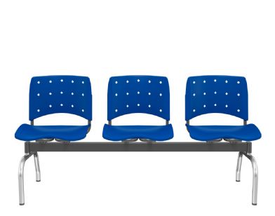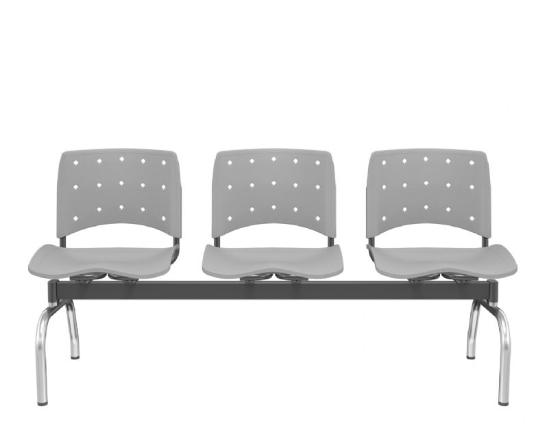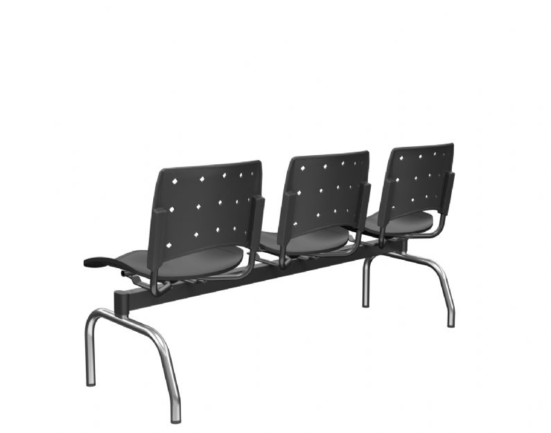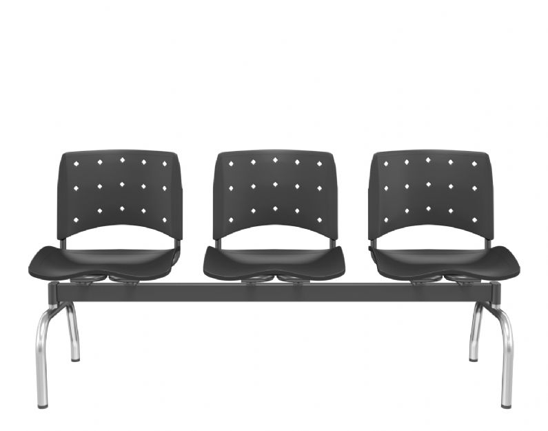 - Longarina Plaxmetal de 3 lugares em Polipropileno - Ergoplax - Base Ferro Cromada