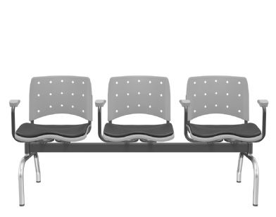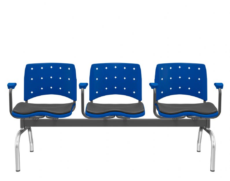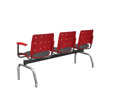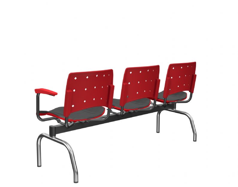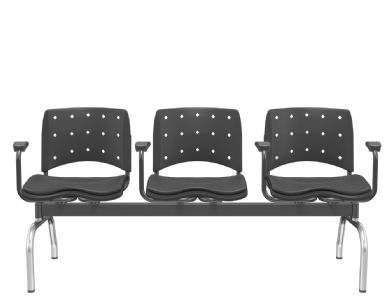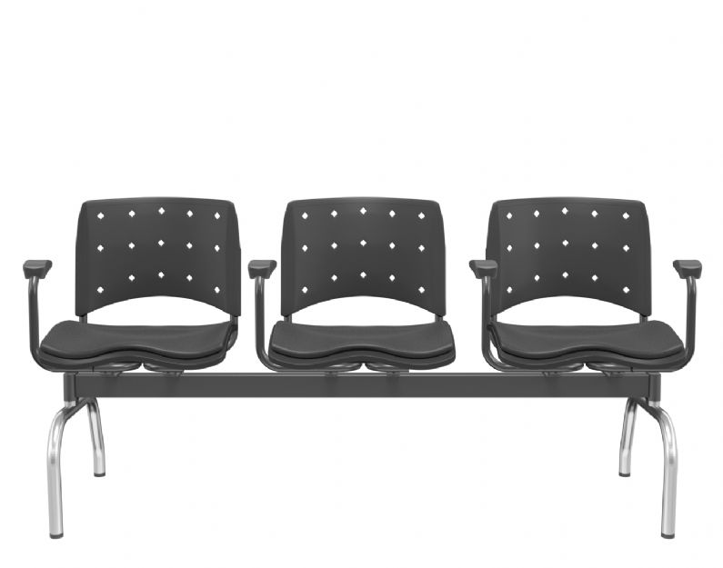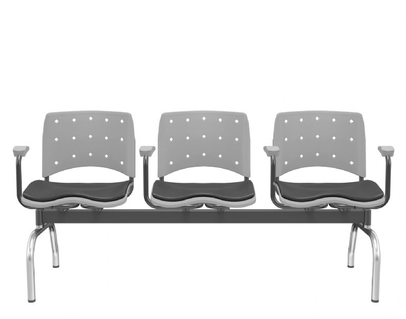 - Longarina Plaxmetal de 3 lugares em Polipropileno - Ergoplax - Base Ferro Cromada - Com Braços