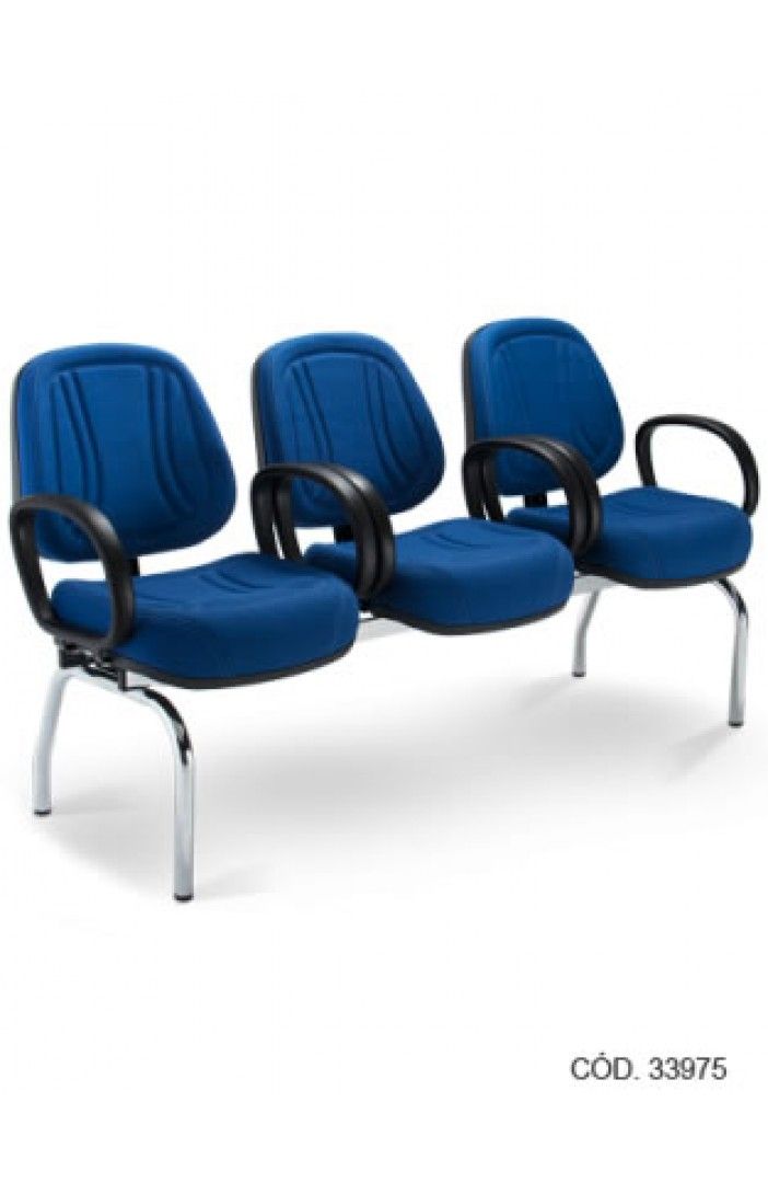 - Longarina de 3 lugares - Modelo Executiva Premium - Base Cromada