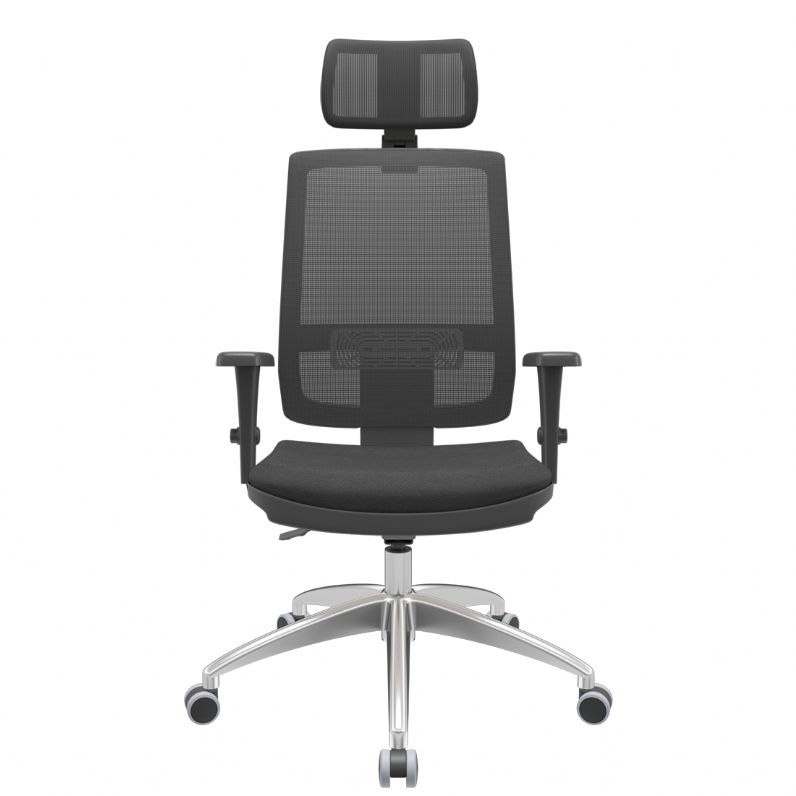 Cadeira Presidente Brizza Tela - Back Plax - Base Alumínio - Braços 3D - Plaxmetal