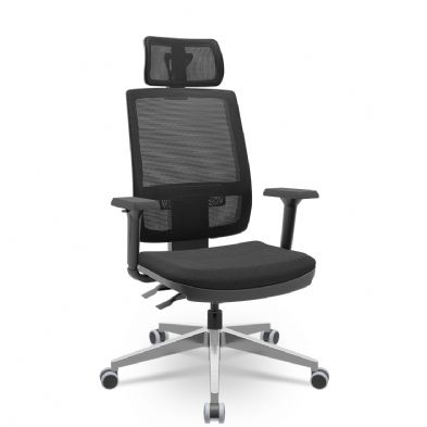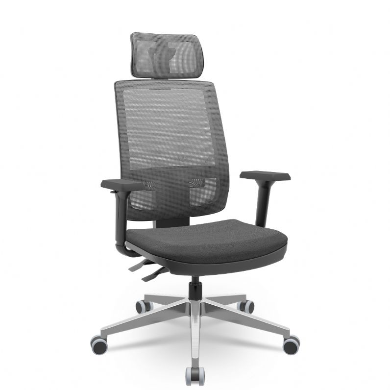 Cadeira Presidente Brizza Tela - Back Plax - Base Alumínio - Braços Shift 3D PP - Plaxmetal