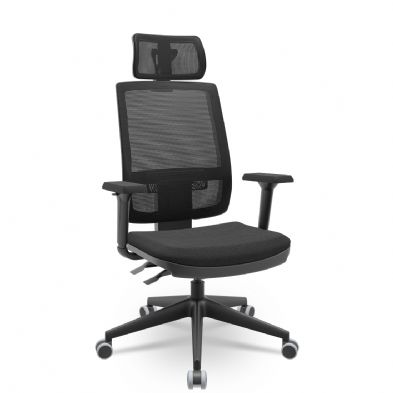 Cadeira Presidente Brizza Tela - Back Plax - Base Itália - Braços Shift 3D - Plaxmetal