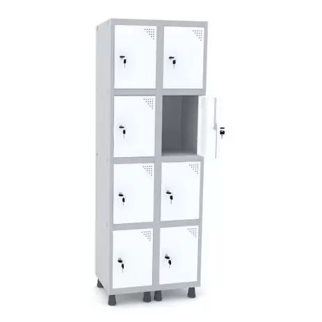 8 portas com 1 veneziana para ventilação e 1 reforço interno por porta