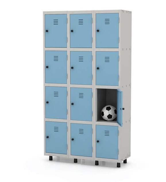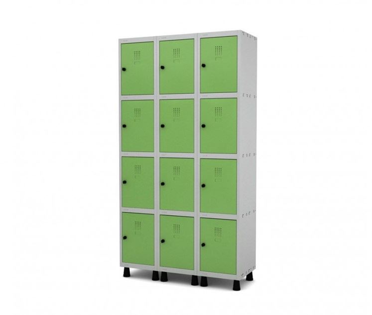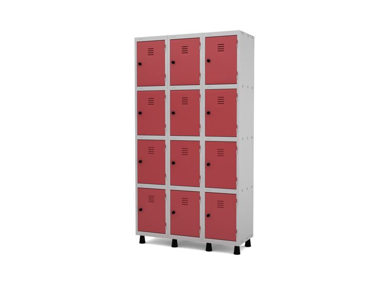 12 portas com 1 veneziana para ventilação e 1 reforço interno por porta
