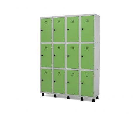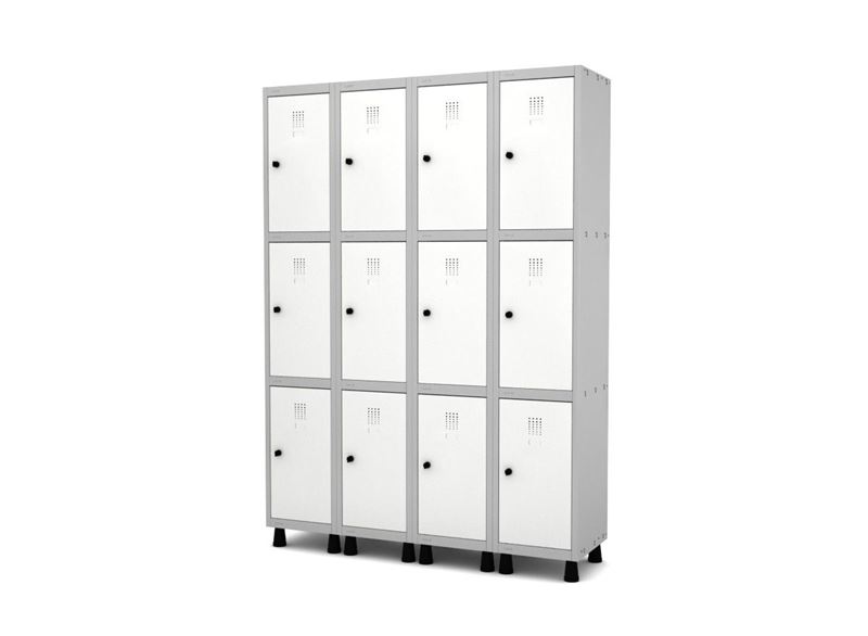 12 portas com 1 veneziana para ventilação e 1 reforço interno por porta