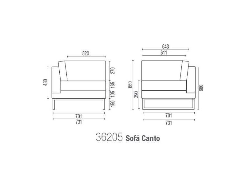 Sofá Espera 36205 Banco Canto - Linha Connect - Base Prata